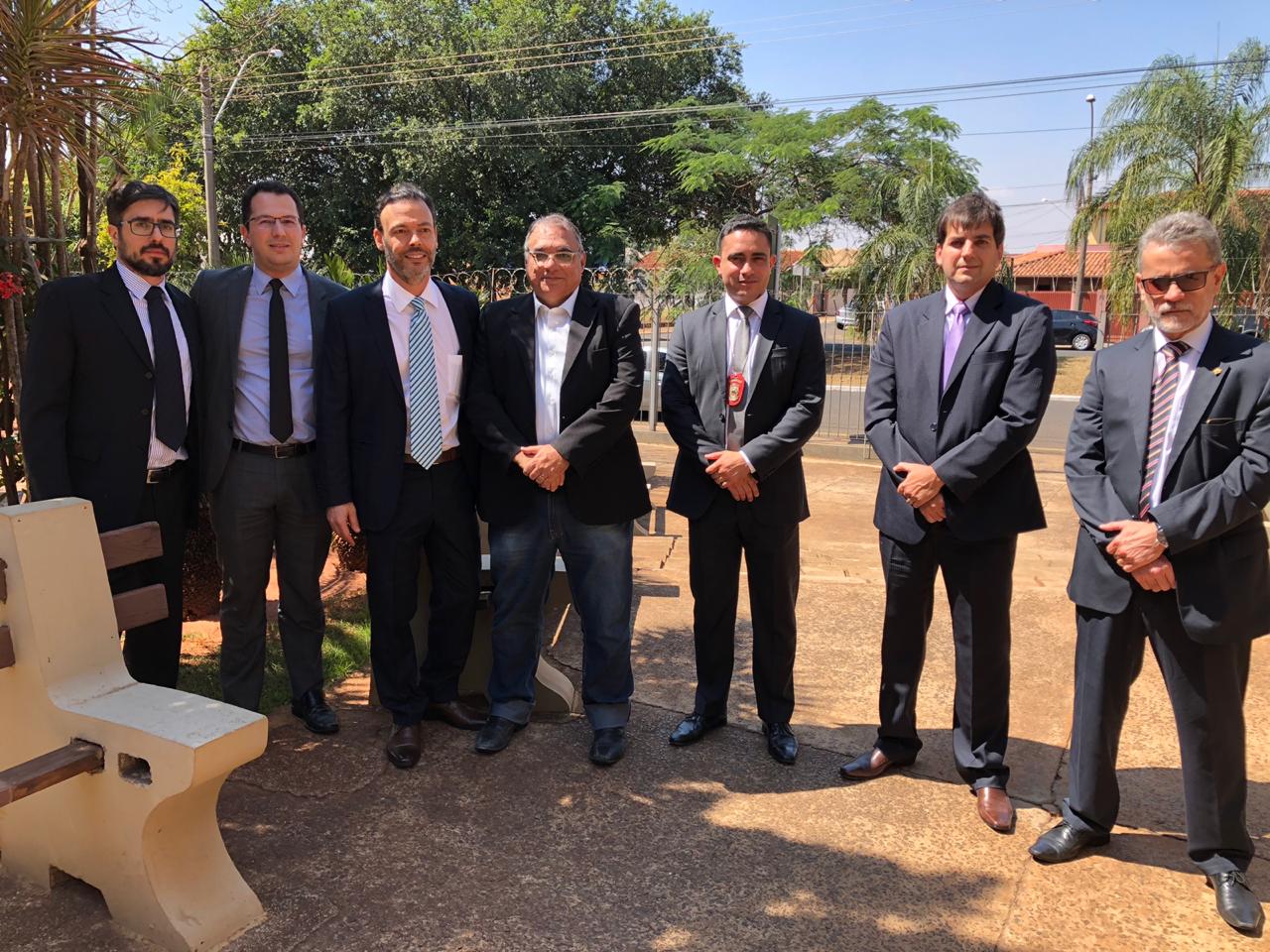 Mostrando coesão, defronte ao Fórum, eles disseram ‘Não à Lei do Abuso de Autoridade’: os juízes Hermano Montanini de Castro e João Carlos Abdala Fº, o promotor Fábio Constantini, o delegado da Dise Maurício Vieira, o delegado do 3º DP João Vitor Silvério, o delegado da DIG Carlos Lopes e o delegado Seccional Eduardo Vasconcelos, em foto para a Gazeta.