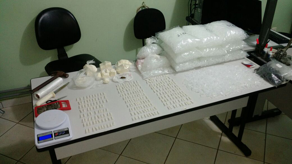 Foram localizados e apreendidos 1,041 kg de pasta base de cocaína, 279 eppendorfs cheios de cocaína, 10 mil eppendorfs vazios, dinheiro, uma balança de precisão e outros apetrechos que auxiliam no preparo de drogas.