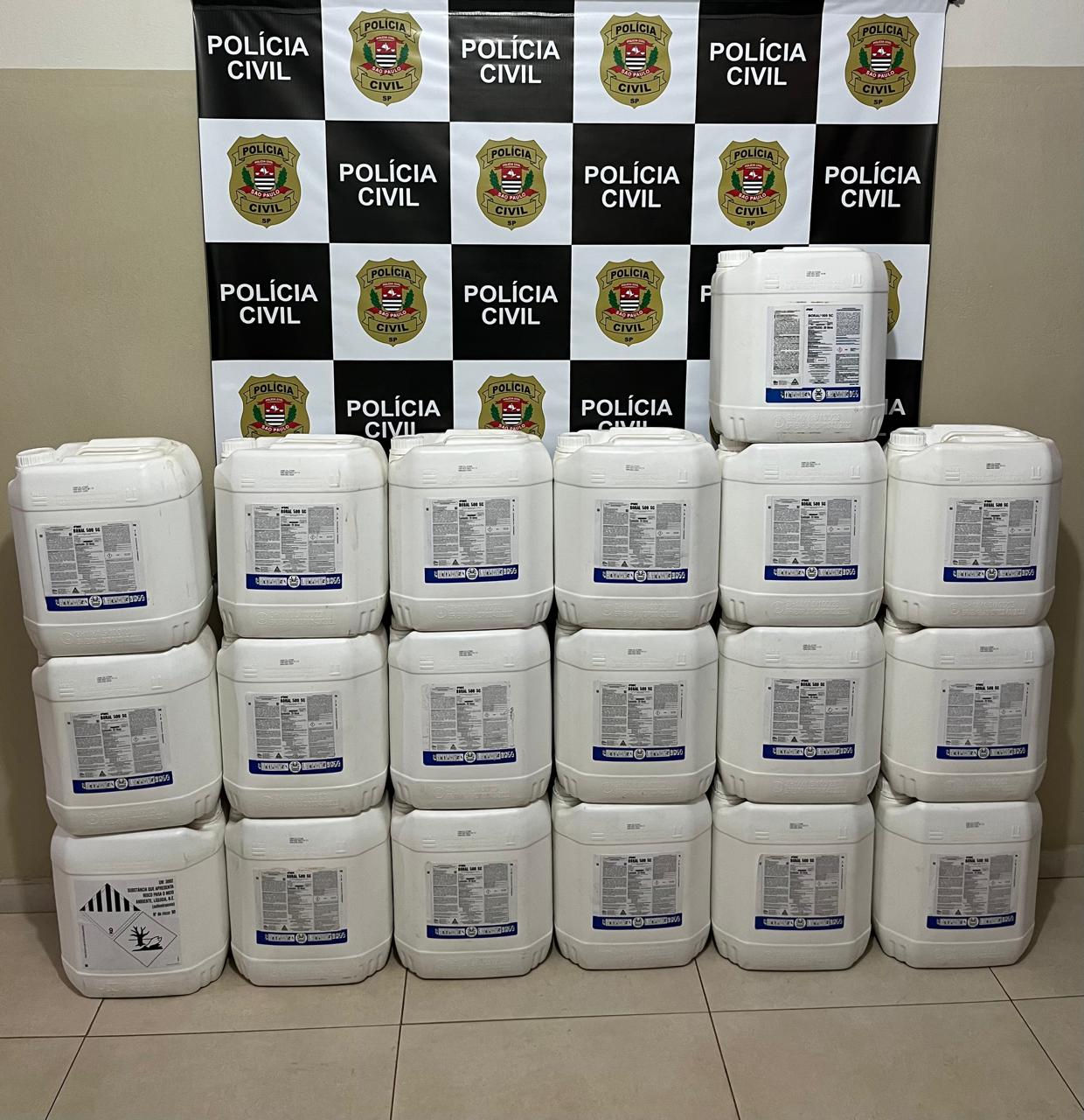 Na terça-feira (16), a Delegacia Seccional de Polícia de Bebedouro informou em boletim de ocorrência que a Polícia Civil, por meio dos policiais civis da DIG (Delegacia de Investigações Gerais) e da Dise (Delegacia de Investigações sobre Entorpecentes), apreendeu 19 frascos de 20 litros do defensivo agrícola tipo herbicida “Boral 500 SC”, avaliados em mais de R$ 120 mil.