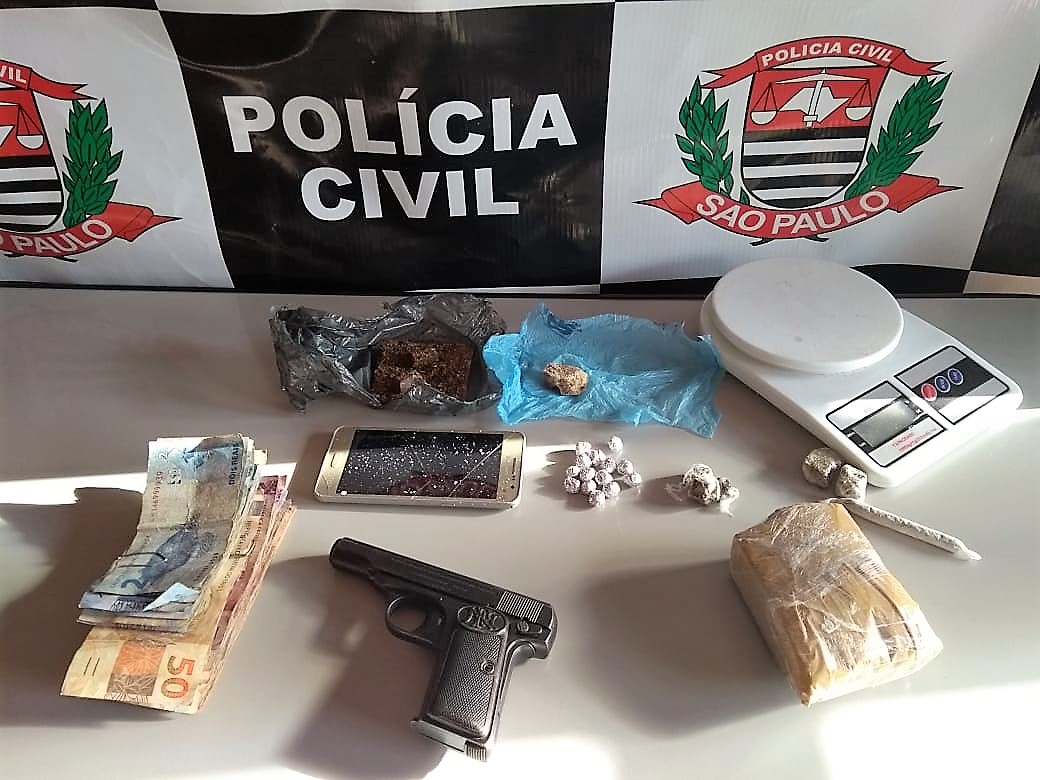 Arma, drogas e balança de precisão foram encontradas com o suspeito, segundo as autorida"es.