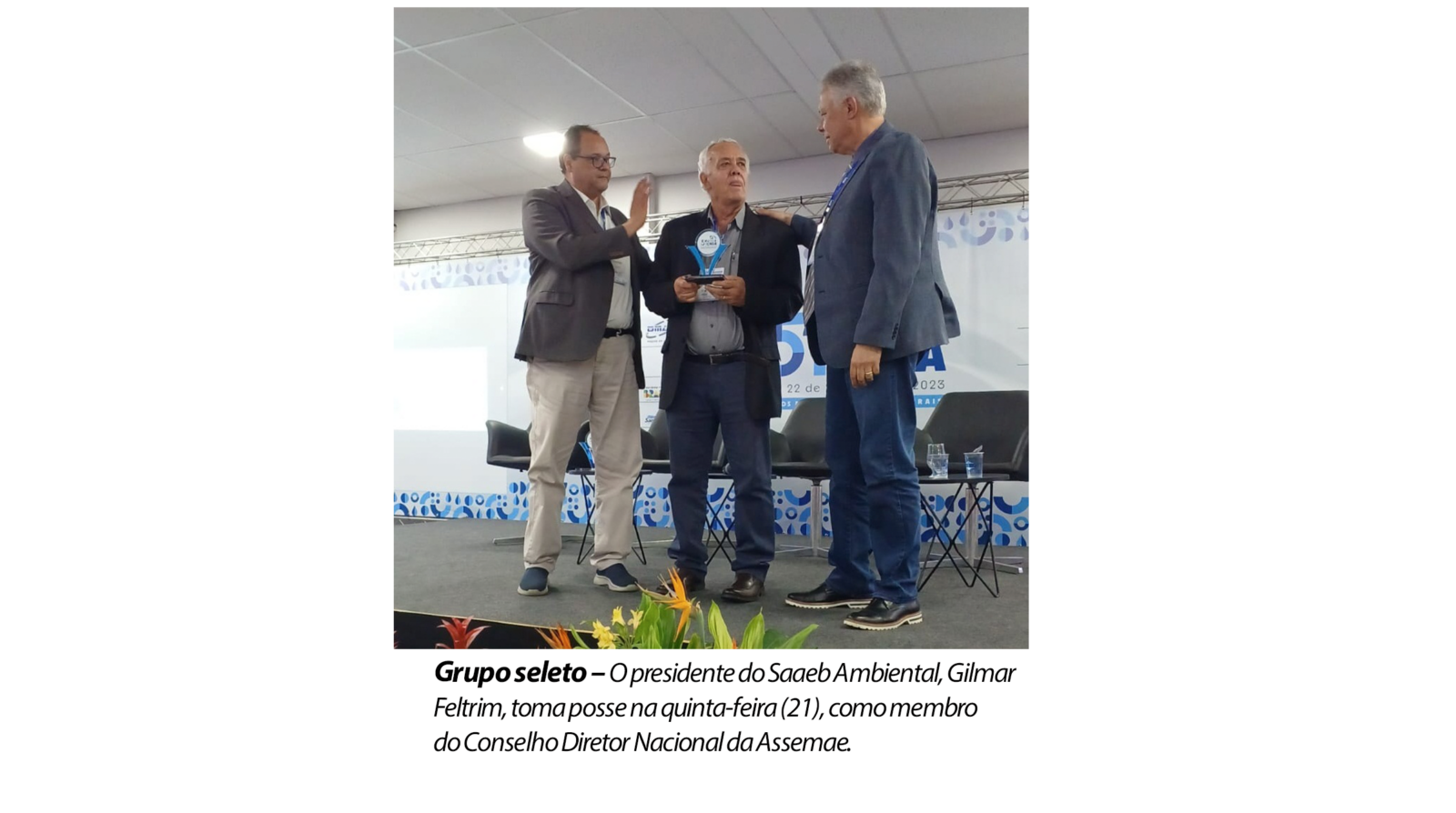 O presidente do Saaeb Ambiental, Gilmar Feltrim, tomou posse na quinta-feira (21), como membro do Conselho Diretor Nacional da Assemae (Associação Nacional dos Serviços Municipais de Saneamento), organização não governamental que representa os prestadores municipais de atividades relacionados ao saneamento básico.