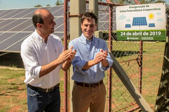 Na inauguração da Usina Fotovoltaica Coopercitrus, o secretário estadual da Agricultura, Gustavo Junqueira e o prefeito Galvão aplaudiram sem moderação o grande feito da cooperativa de produtores rurais.