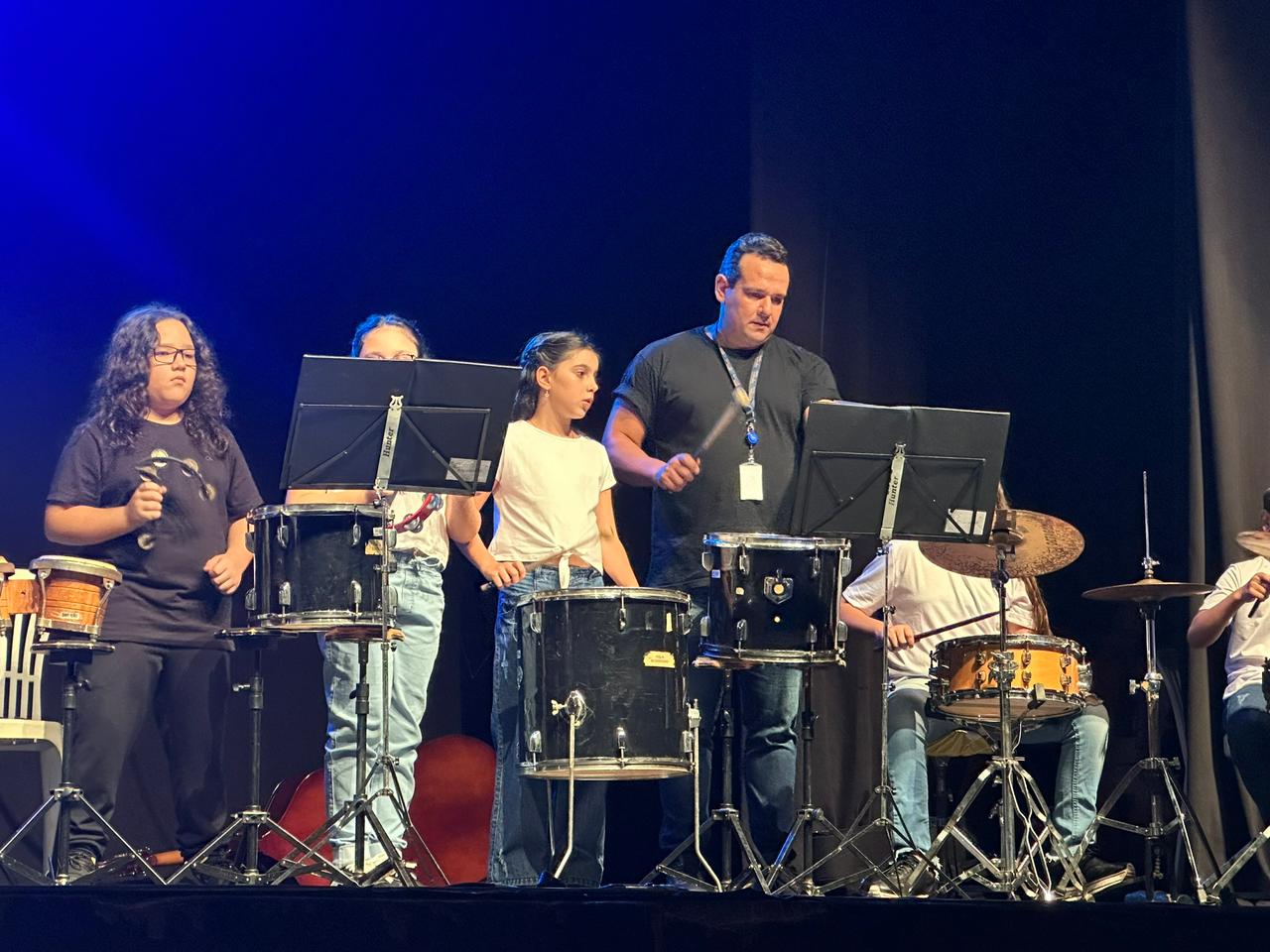 Na noite de quinta-feira (20), o Teatro Municipal foi palco da apresentação do Projeto Guri, encerrando o semestre, que atende atualmente 102 crianças matriculadas. Na apresentação, todas as crianças participaram na presença de suas famílias e da comunidade, com casa cheia, revela a coordenadora do Polo Bebedouro, Renata Rogge.