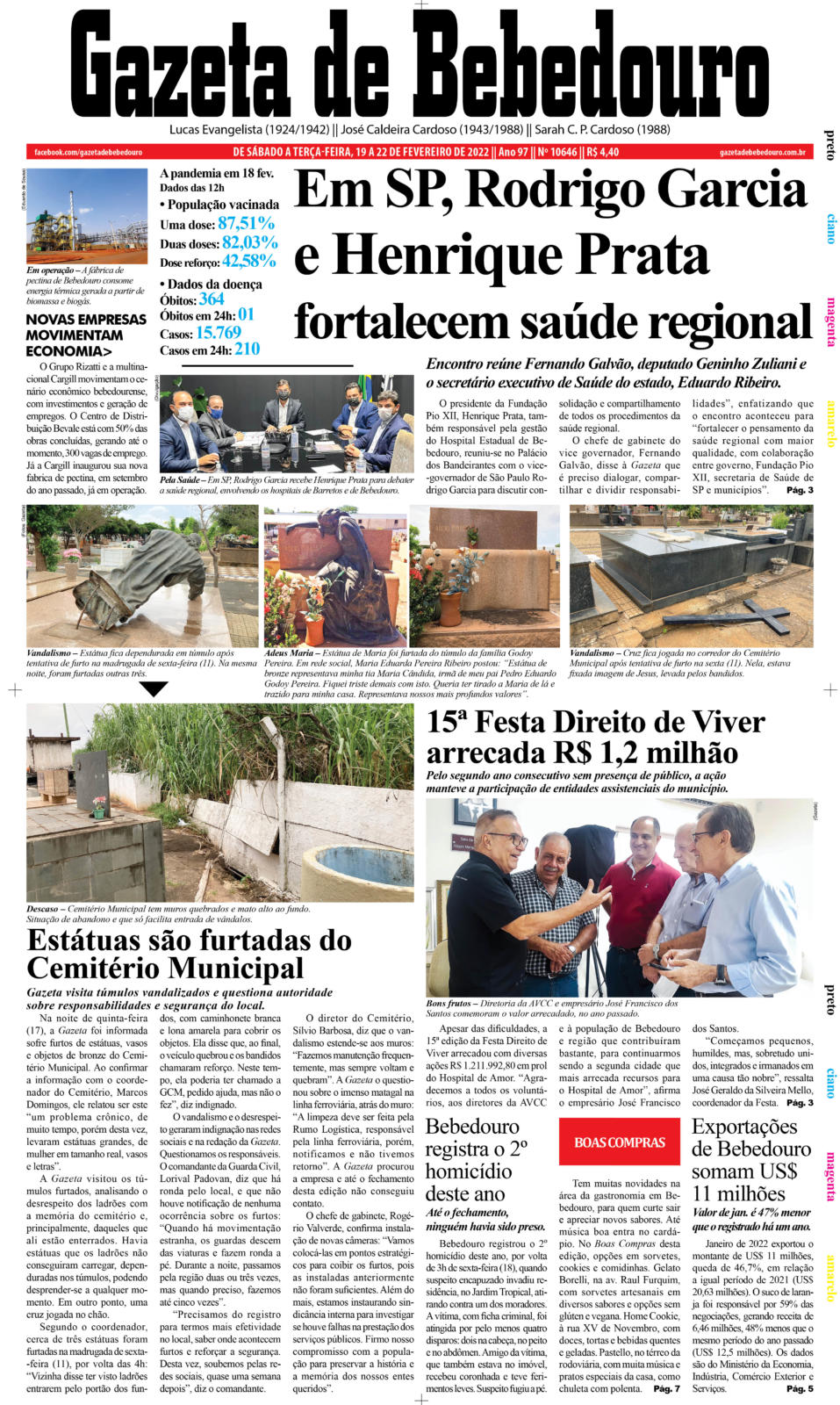 O presidente da Fundação Pio XII, Henrique Prata, também responsável pela gestão do Hospital Estadual de Bebedouro, reuniu-se no Palácio dos Bandeirantes com o vice-governador de São Paulo Rodrigo Garcia para discutir consolidação e compartilhamento de todos os procedimentos da saúde regional.