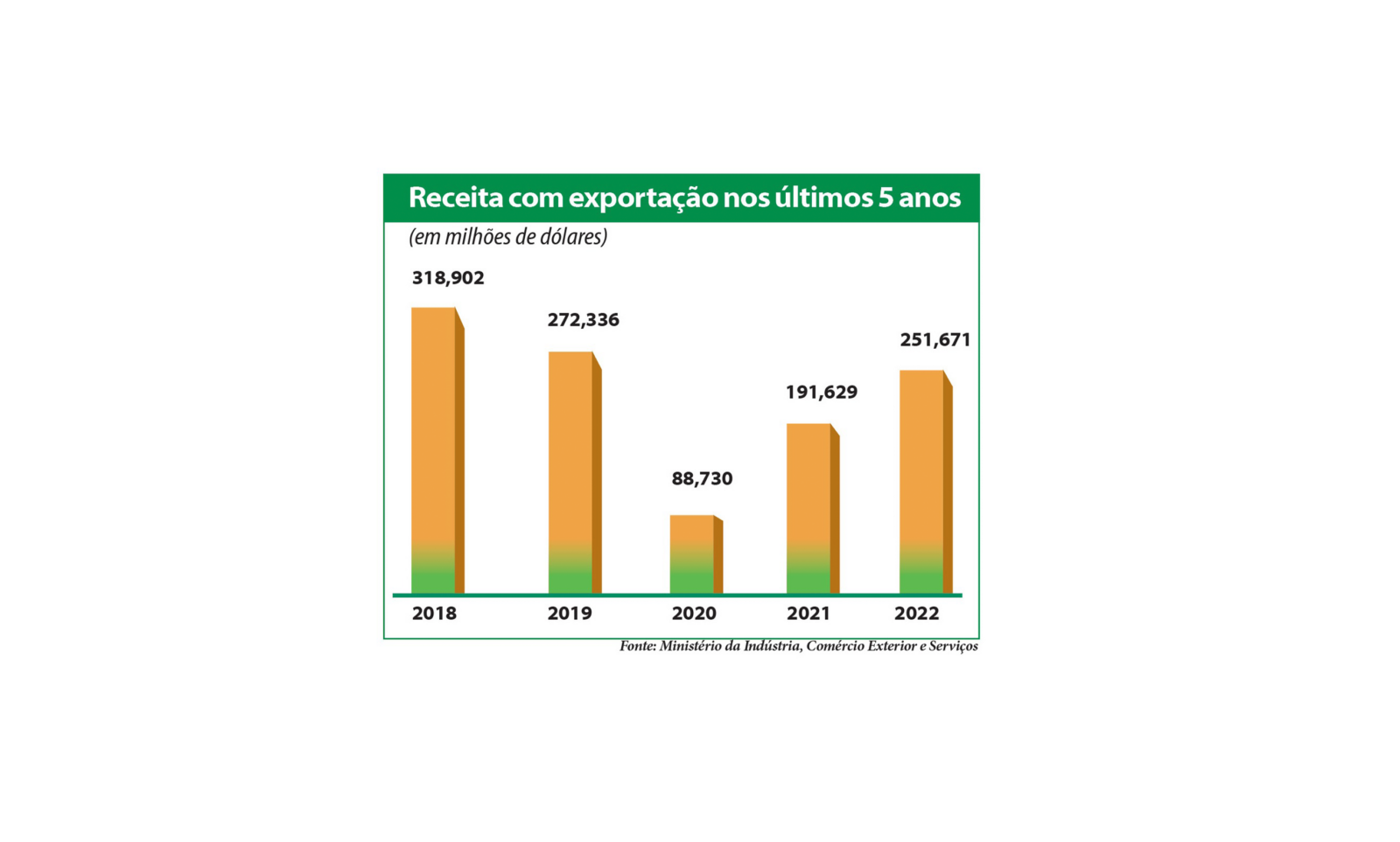 Em 2022, a receita com exportação cresceu 31,3%, em relação ao mesmo período do ano anterior: (US$ 251,67 milhões em 2022 x US$ 191,63 milhões em 2021), segundo dados do MDIC (Ministério da Indústria, Comércio Exterior e Serviços).