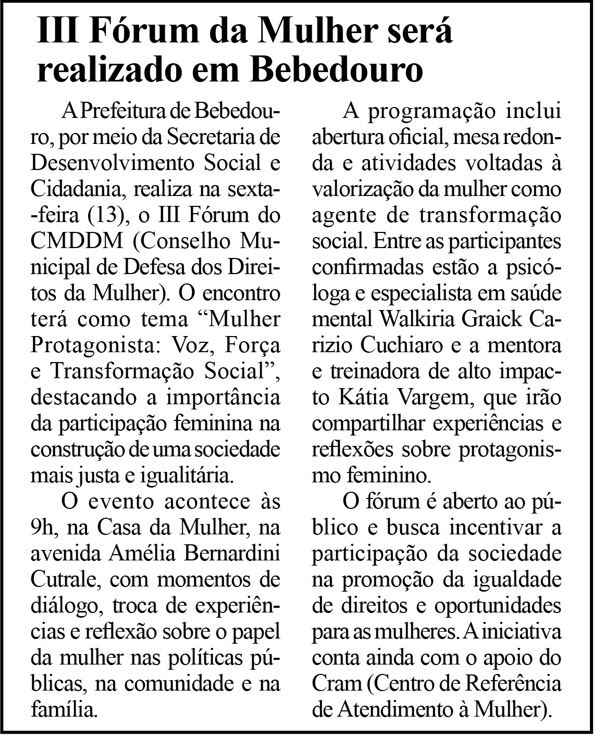 O jornalista Marcos Pitta, que também acompanhou a cerimônia, destaca o significado do momento para a cidade: “É muito significativo ver uma cidade que faz a mulher se sentir importante e reconhecida por seu trabalho e dedicação. Ver tantas mulheres subindo ao palco, de diferentes idades e profissões, mostra que essa data representa muito mais que um gesto simbólico”.