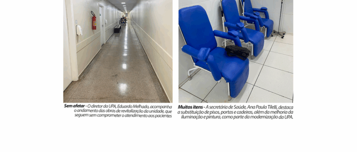 A Unidade de Pronto Atendimento (UPA) passa por processo de revitalização estrutural e estético, com previsão de conclusão na segunda quinzena de novembro de 2025. As intervenções, que visam modernizar o espaço e oferecer maior conforto a pacientes e servidores, seguem em ritmo avançado, segundo informações do gestor da unidade, Eduardo Melhado.