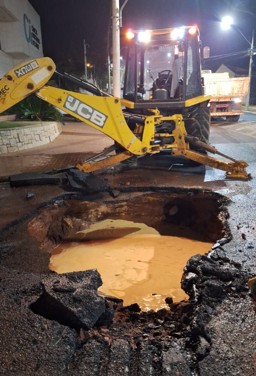 Uma adutora na av. Maria Dias, perto da comporta do Lago Artificial, deixou temporariamente os bairros Major Cícero Carvalho e parte do Resid. Furquim, sem abastecimento de água, no domingo (8). “Fomos avisados por volta das 18h e trabalhamos até 24h30. Como oferecia risco muito grande pela profundidade que estava e pelo adiantado da hora, não conseguimos estancar todo o vazamento, pois fizemos o teste e vazou.