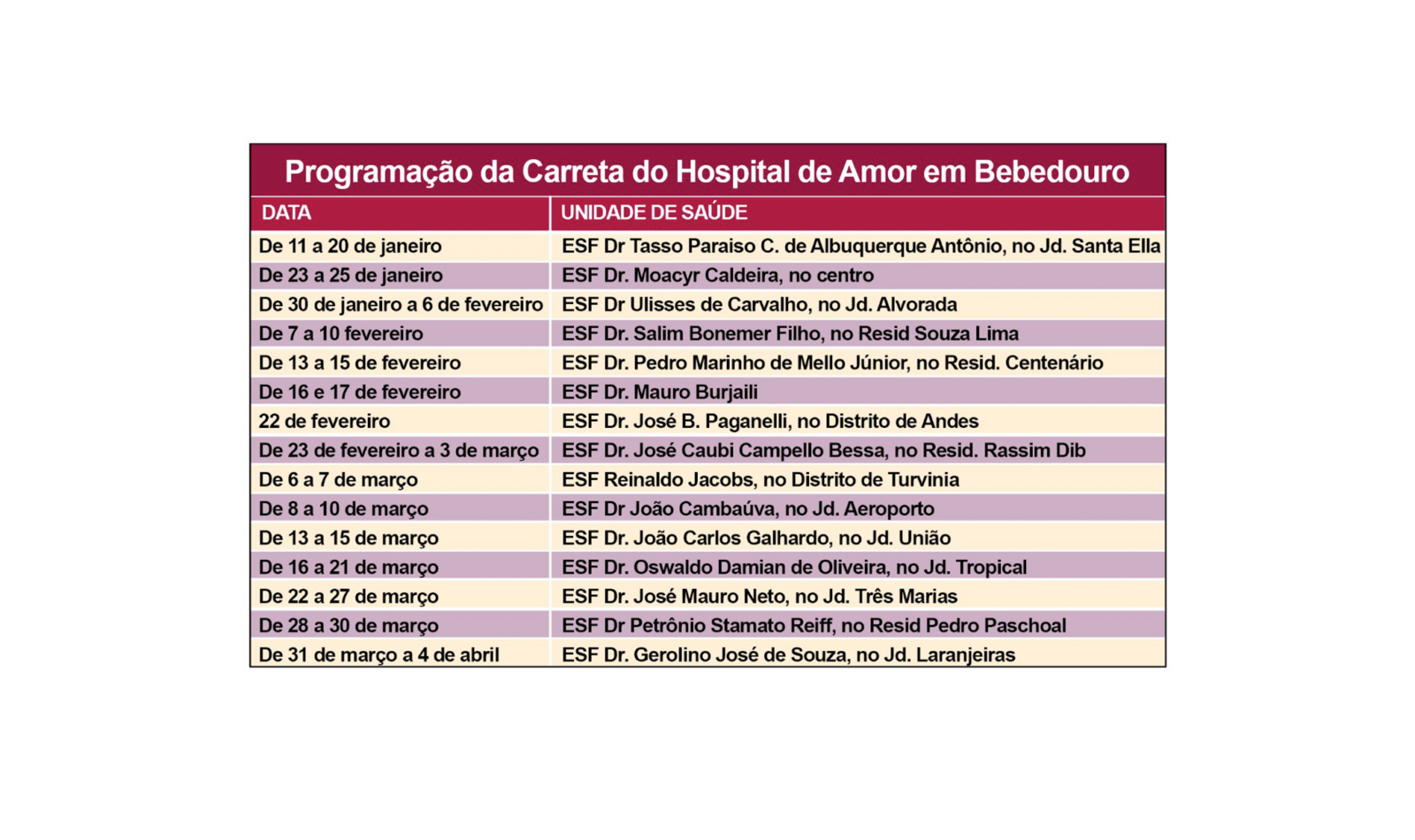 A Secretaria Municipal de Saúde está agendando exames de prevenção ao câncer de mama, útero e boca. A carreta móvel do Hospital de Amor de Barretos chega à cidade em 11 de janeiro e ficará estacionada em frente às unidades de saúde até 4 de abril.