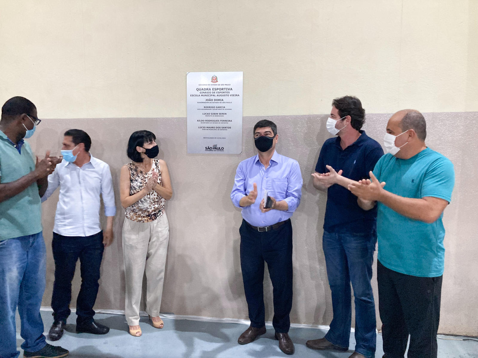 Na noite de terça-feira (15), o DME (Departamento Municipal de Esportes) e a Prefeitura Municipal efetivaram a entrega da revitalização do Ginásio Poliesportivo Osvaldo Angeloni, ao lado da Emef. Dr. Augusto Vieira, no Jardim Centenário. Foram realizadas ações como pintura das arquibancadas, troca de toda iluminação com LED, instalação de chuveiros novos nos vestiários e piso esportivo de alto padrão e qualidade profissional internacional, como definiram os envolvidos.
