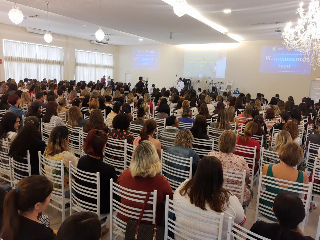 O evento aconteceu em salão de eventos e reuniu cerca de 700 profissionais da Educação entre professores, gestores, auxiliares docentes e estagiários para assistirem à palestra com a temática “O professor como fonte de motivação para o aprendizado do aluno”.