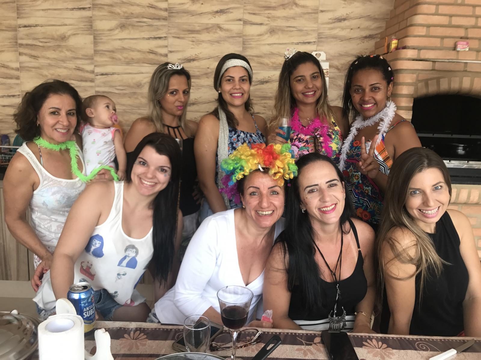 As atletas da ABA no carnaval só de mulheres. Na foto, Judite e Mariana, Stefania, Jac, Viviane, Ingrid, Silvinha, Fabiana, Patrícia e Taisa.