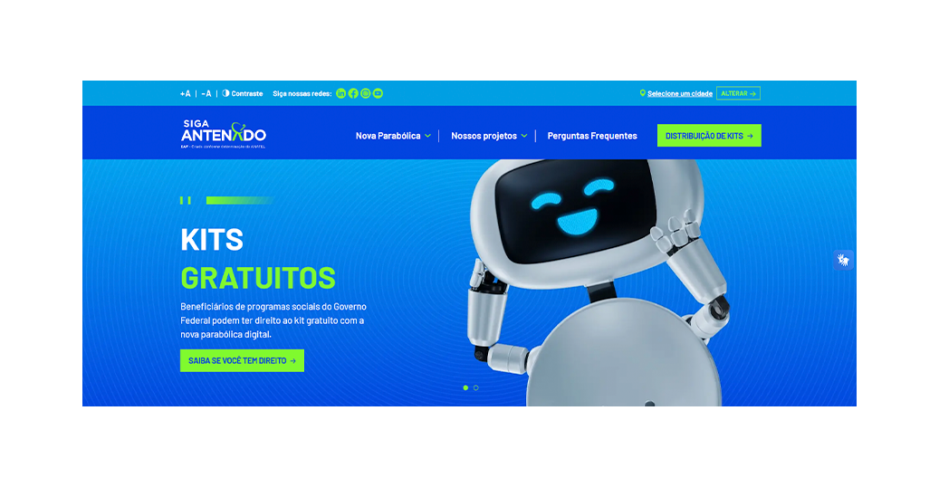 Em Bebedouro e outras 36 cidades da região, famílias com menor renda podem fazer o agendamento para receber o kit com a nova parabólica digital. Para quem está inscrito em algum programa do Governo Federal, está em regularidade com o CadÚnico e possui a parabólica tradicional funcionando em casa, recebe este kit gratuitamente, através da Siga Antenado, entidade responsável por apoiar a população durante a migração do sinal de TV utilizado pelas parabólicas tradicionais (Banda C) para o sinal das parabólicas digitais (Banda Ku).
