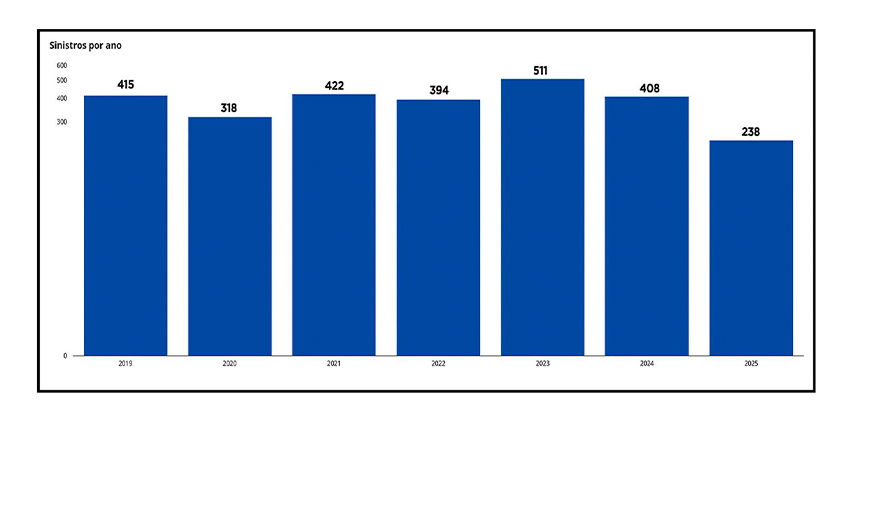 Os dados do Infosiga, sistema do Governo do Estado de São Paulo que consolida estatísticas de trânsito, indicam redução expressiva no número de sinistros de trânsito registrados em Bebedouro em 2025, interrompendo sequência de oscilações observada ao longo dos últimos anos. Com 238 ocorrências, o município alcançou o menor volume da série histórica analisada, que compreende o período de 2019 a 2025.