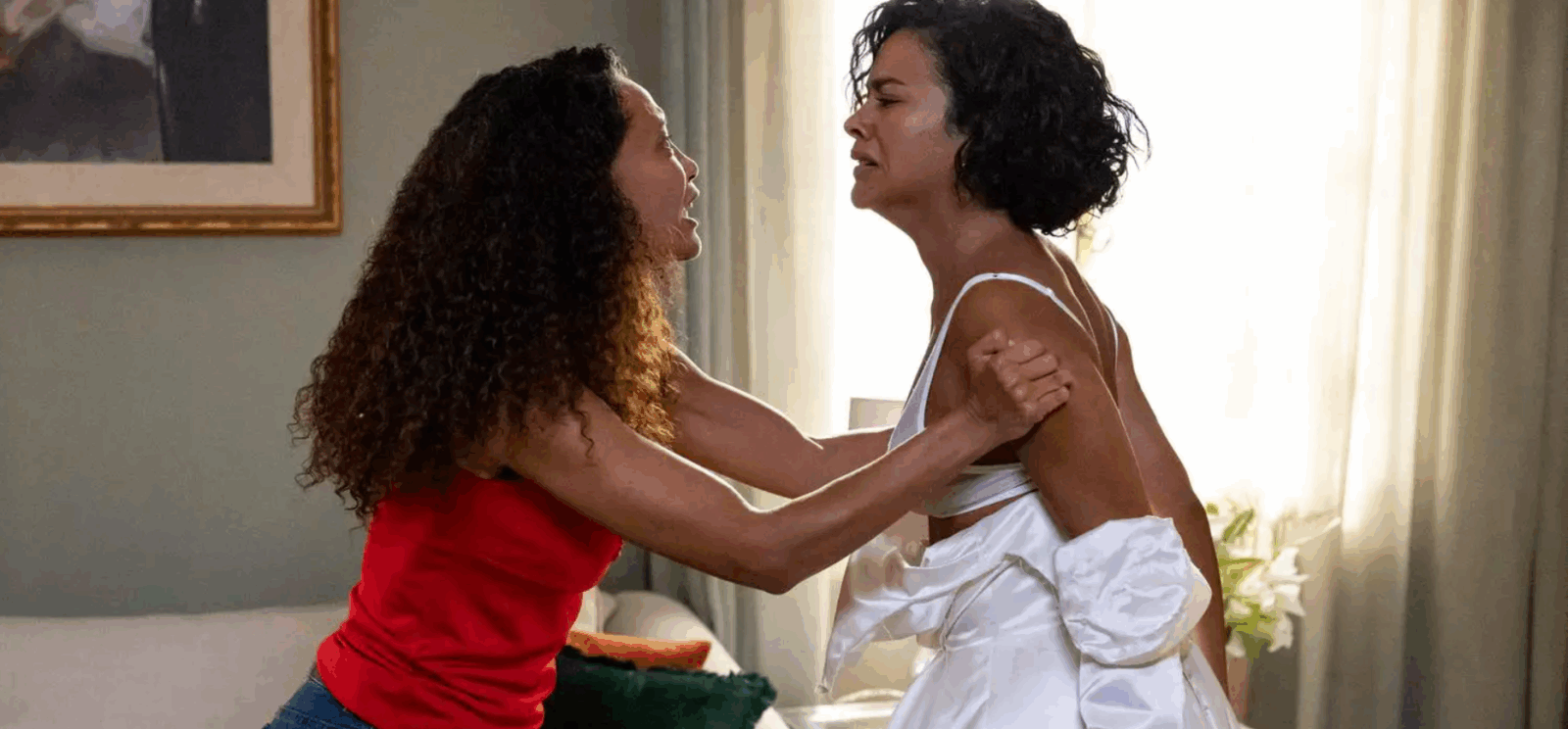 E o capítulo de segunda-feira (7) entregou o que prometeu. Foi ao ar a esperadíssima cena da mãe rasgando o vestido de noiva da filha, sequência imortalizada por Regina Duarte e Gloria Pires em 1988. E aqui, sim, o remake justificou sua existência, graças a uma única pessoa: Taís Araújo.