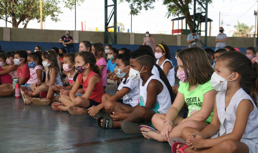 Alunos da Emeb Prof. Lellis do Amaral Campos, do Alto da Boa Vista, zona leste de Bebedouro, aprenderam sobre redução, reutilização e reciclagem de lixo de maneira diferente, na tarde de quarta-feira (29). Realizada pelo Ministério do Turismo, do Governo Federal, em parceria com a Concessionária de Rodovias Tebe, a peça de teatro musical “Transform-ação” trouxe diversão e conscientização para as crianças de 4 a 11 anos da unidade escolar.