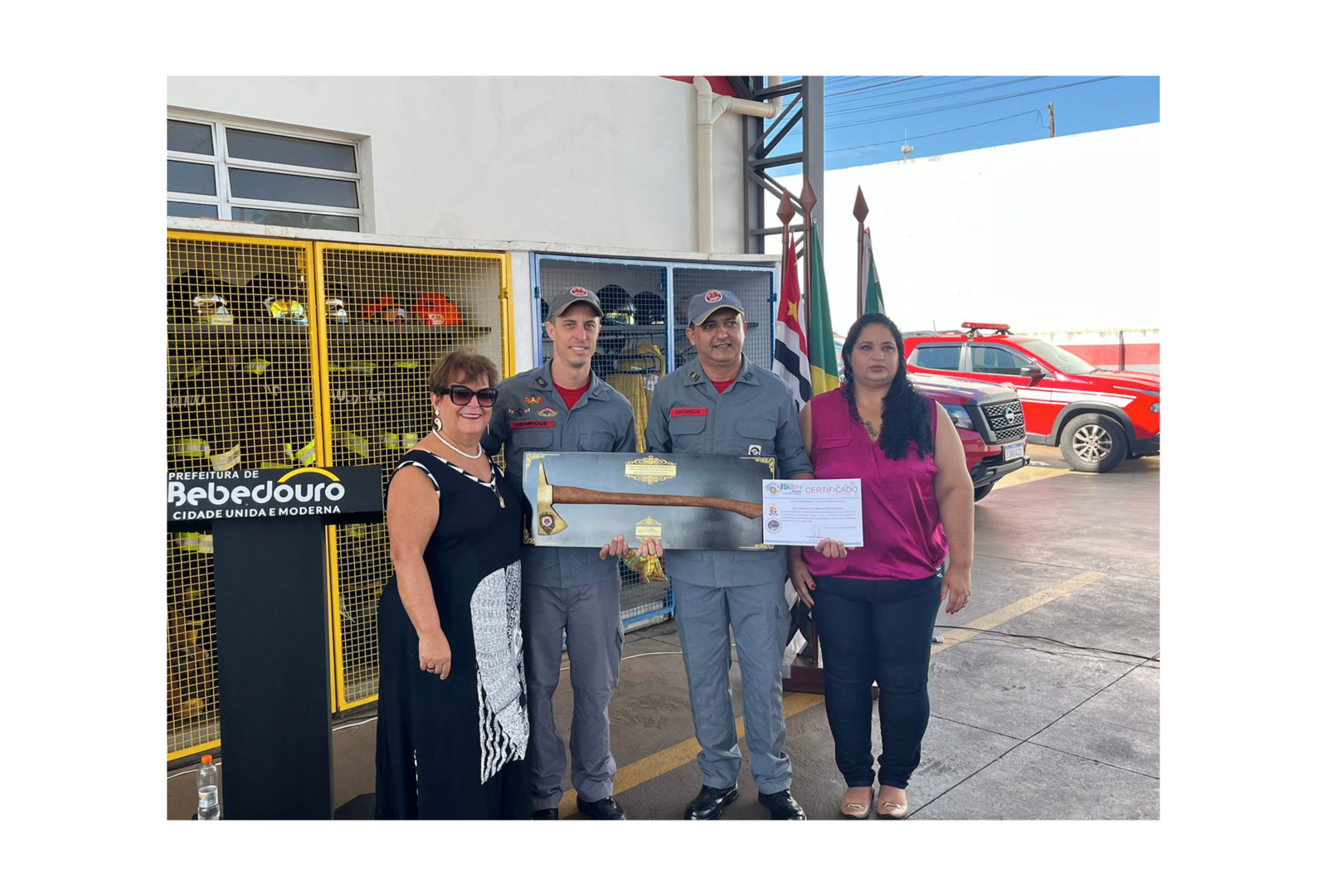 Com a presença de amigos e familiares, o tenente Luciano Escopelo encerrou na manhã de quarta-feira (29), sua carreira no Corpo de Bombeiros: “Agradeço a presença de todos os companheiros da reserva, dos colegas de Ribeirão Preto e Sertãozinho, ao Wellington por essa solenidade e por todos esses anos que trabalhamos aqui. Foram 29 anos de Polícia Militar, sendo 20 trabalhando no Corpo de Bombeiros. A minha história começou em 1994, como bombeiro voluntário no antigo Posto de Bebedouro. Hoje, é uma emoção muito grande estar encerrando minha carreira. Não é fácil a vida na Polícia Militar, em especial no Corpo de Bombeiros, temos que ter perseverança, acreditar no futuro e não desistir dos nossos sonhos. Aos mais novos, procurem se graduar e crescer na carreira, a recompensa vem. Agradeço a Deus pela oportunidade, à minha família, aos meus companheiros da reserva e ao pessoal do Posto de Bebedouro”.