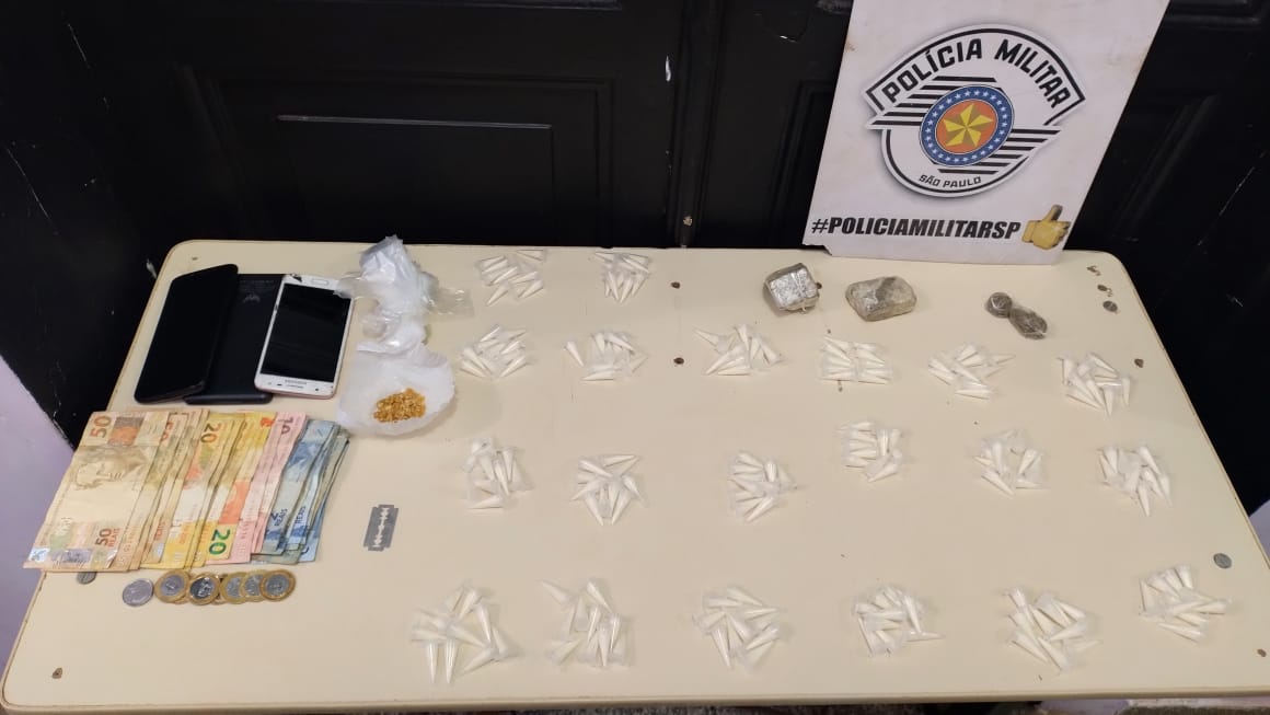 Ainda no sábado, a PM, em patrulhamento no Jd. União deteve duas pessoas comercializando drogas. Os dois indivíduos foram encaminhadas ao plantão policial, onde o delegado de plantão deu voz de prisão por tráfico de drogas e associação. Na ocasião, a PM apreendeu uma portão de crack, quatro porções de maconha, 201 micro tubos de cocaína, dois celulares, um carregador de celular, apetrechos para embalar as drogas e a quantia de R$ 499,50.